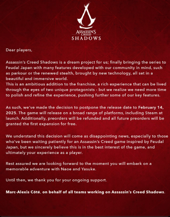 Ubisoft took to social media to share the announcement. They stated, “We understand this decision will come as disappointing news, especially to those who’ve been waiting patiently for an Assassin’s Creed game inspired by Feudal Japan, but we sincerely believe this is in the best interest of the game, and ultimately your experience as a player.”