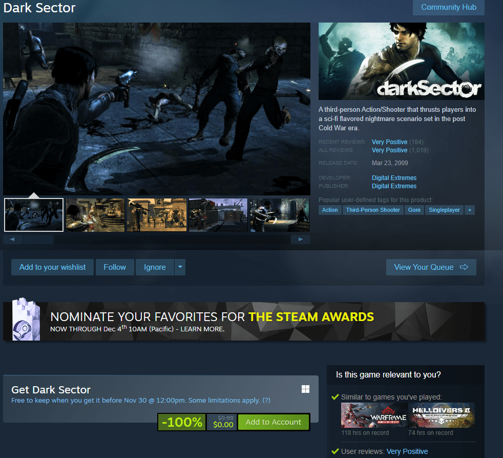 [LIMITED TIME] Dark Sector Free on Steam Until Nov 30th: Experience the Origins of Warframe’s World